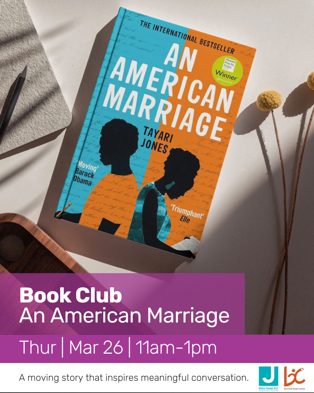 The Miles Nadal JCC Book Club returns in March! Reviewer Denise Drabkin spotlights An American Marriage, New York Times best-selling author Tayari Jones’ moving portrayal of the effects of a wrongful conviction on a young African-American couple, and the examination of institutional racism and social prejudice.